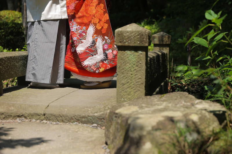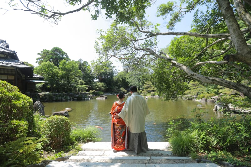 本格的な茶室スタジオで撮影する、和装の結婚写真