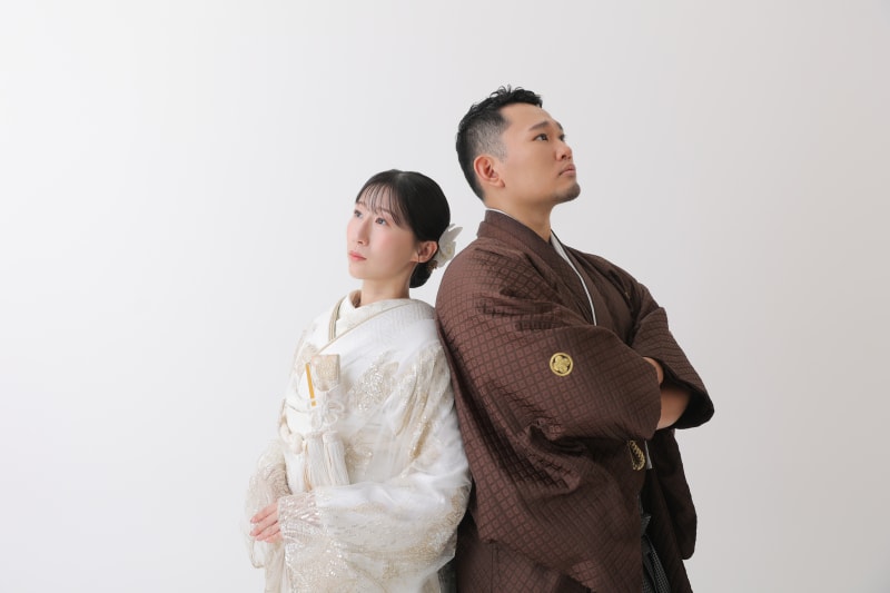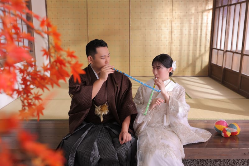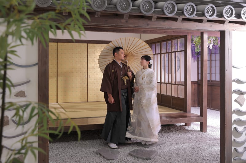 本格的な茶室スタジオで撮影する、和装の結婚写真