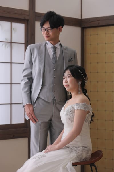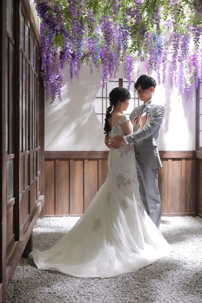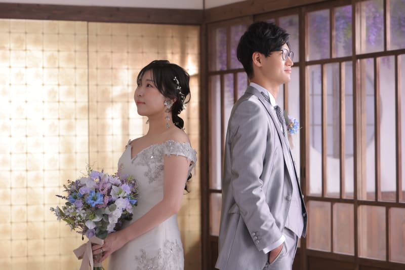 本格的な茶室スタジオで撮影する、和装の結婚写真