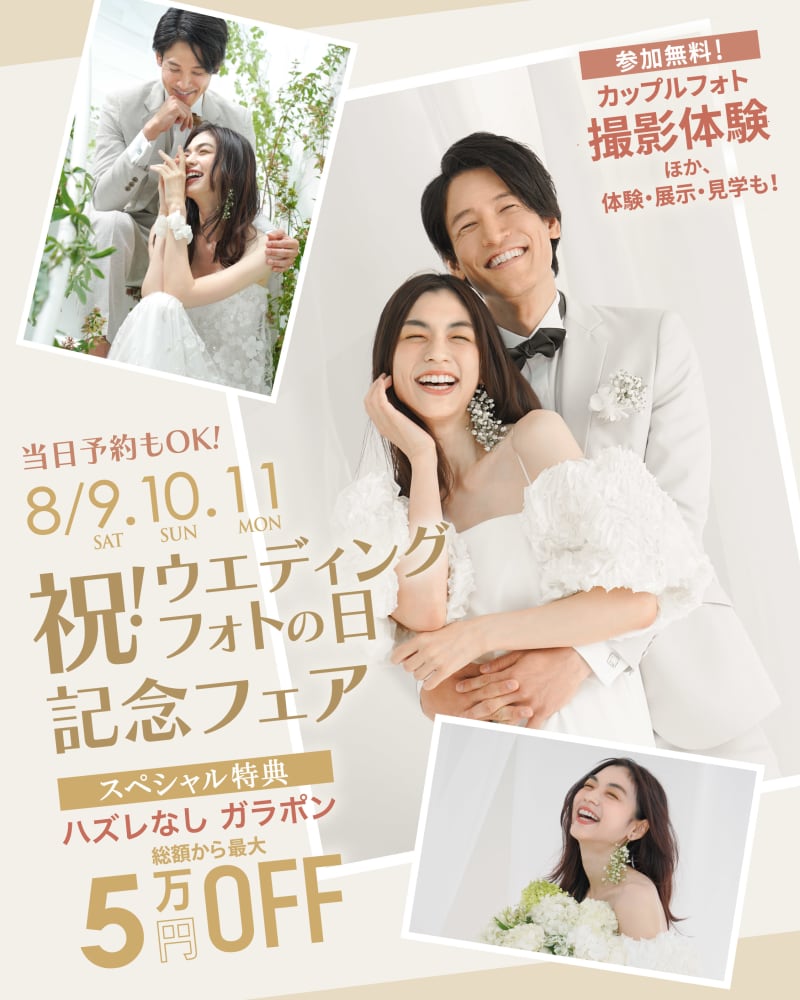 【8月9日(土)-8月11日(祝月)開催】祝!ウエディングフォトの日 記念フェア