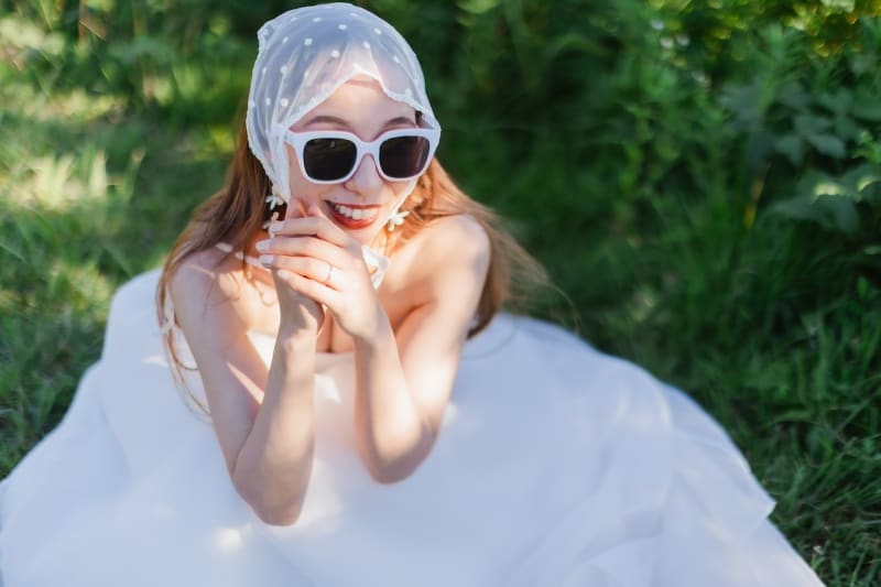 もともとミディアムぐらいの髪の長さのご新婦様。