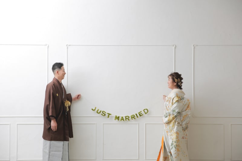 お手製のお洒落なJUST MARRIEDのガーランドはお二人の雰囲気にもピッタリ!!