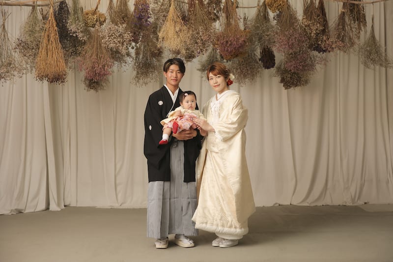 ドライフラワーの背景でお子様とご一緒に♡👶