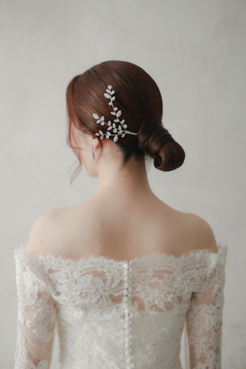 衣装やブーケイメージに合わせてヘアスタイルもタイトに✨