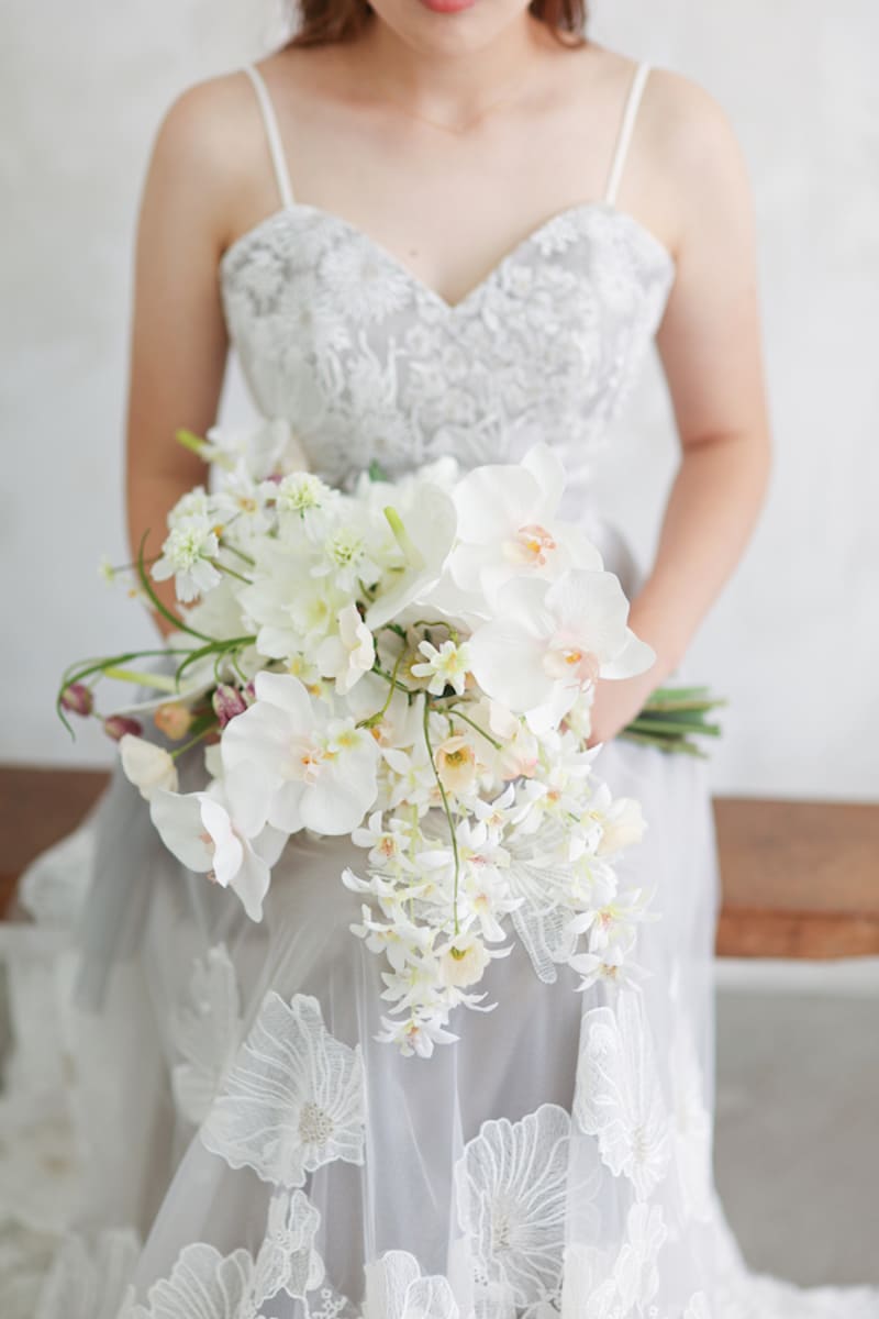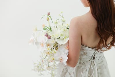 白の胡蝶蘭を主役に大小様々なお花をふんだんに使用し