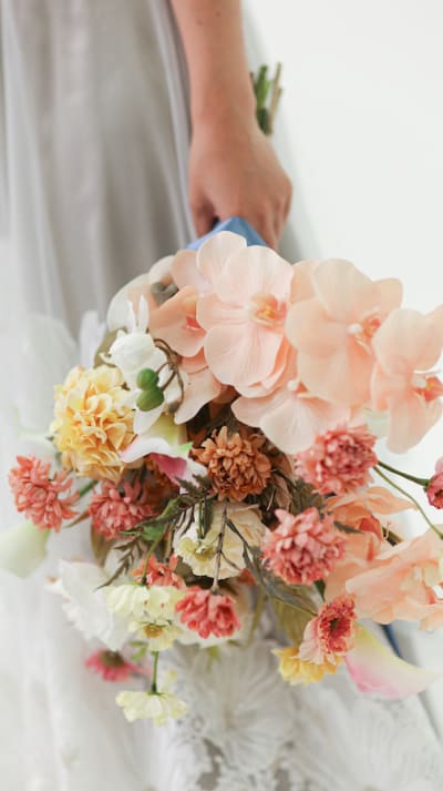 色とりどりのお花が飛び出してくるようなデザインは笑顔の可愛らしい花嫁様にぴったり!