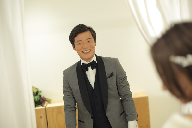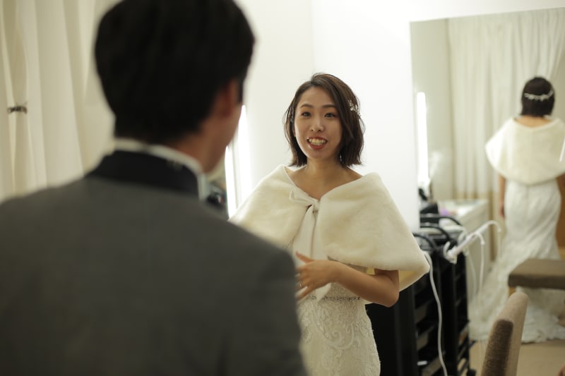新郎様のメイクの仕上がりに感動されたご様子。
