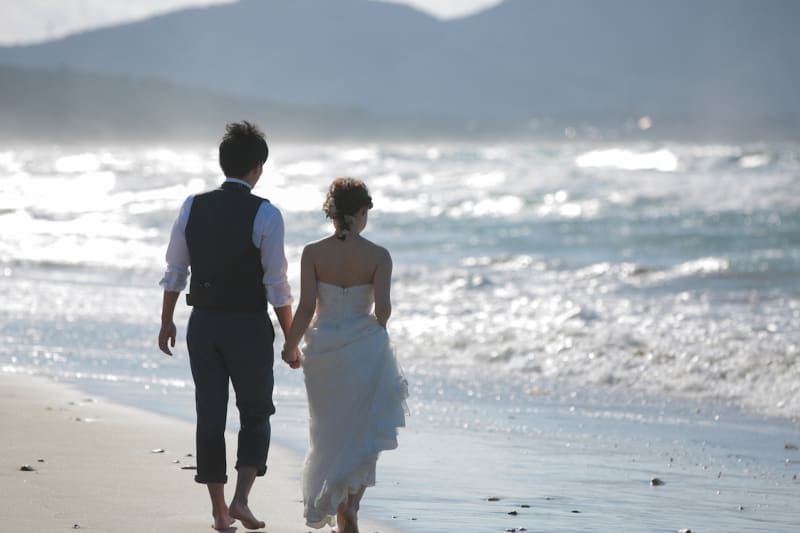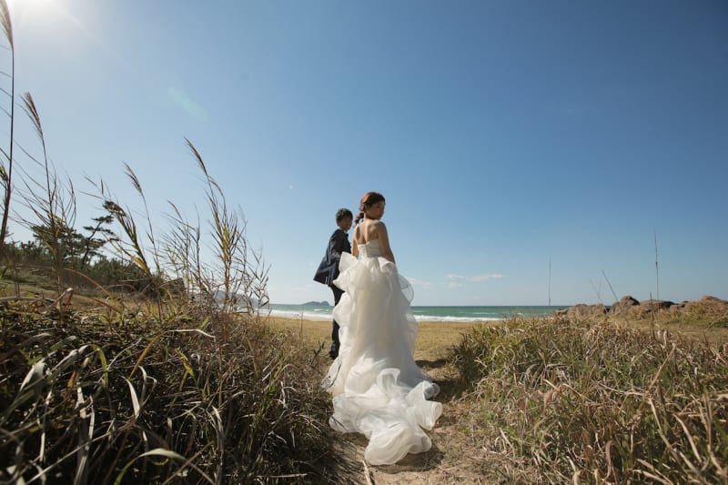 海辺の撮影はドレスによっても雰囲気が変わります☆
