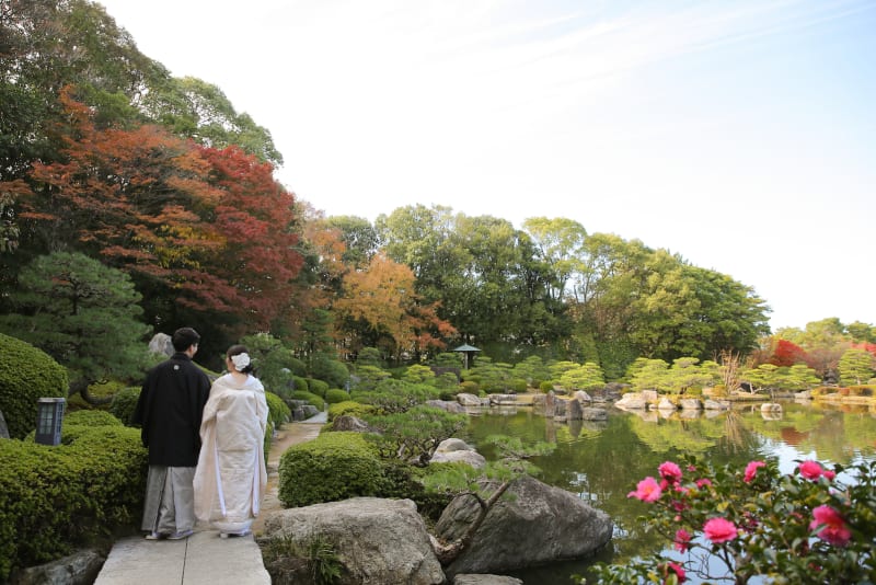 庭園内は広いので色々な景色をバックにお写真を残すことができます。