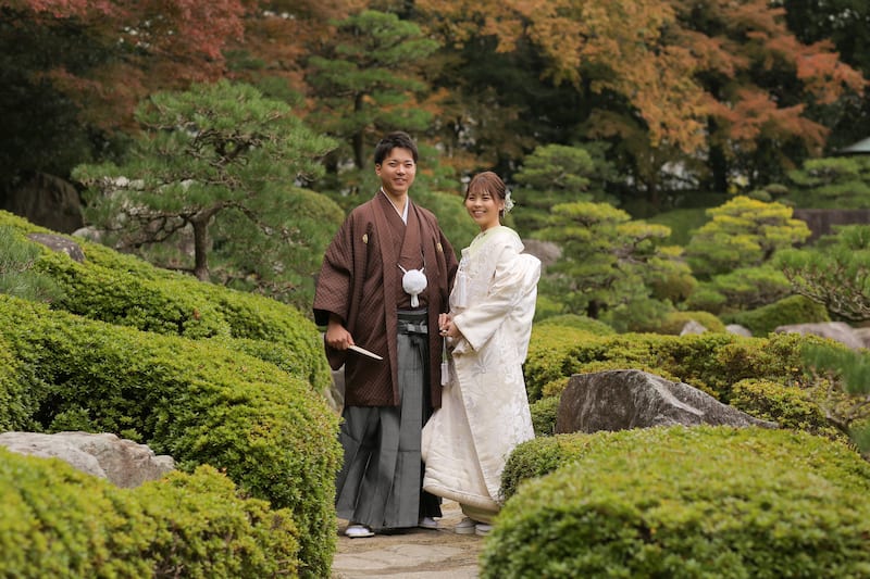 庭園内を散歩してもらったり、かっちりと王道の立ち姿を撮影したり