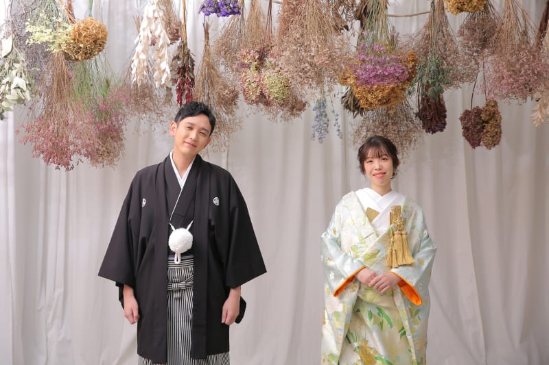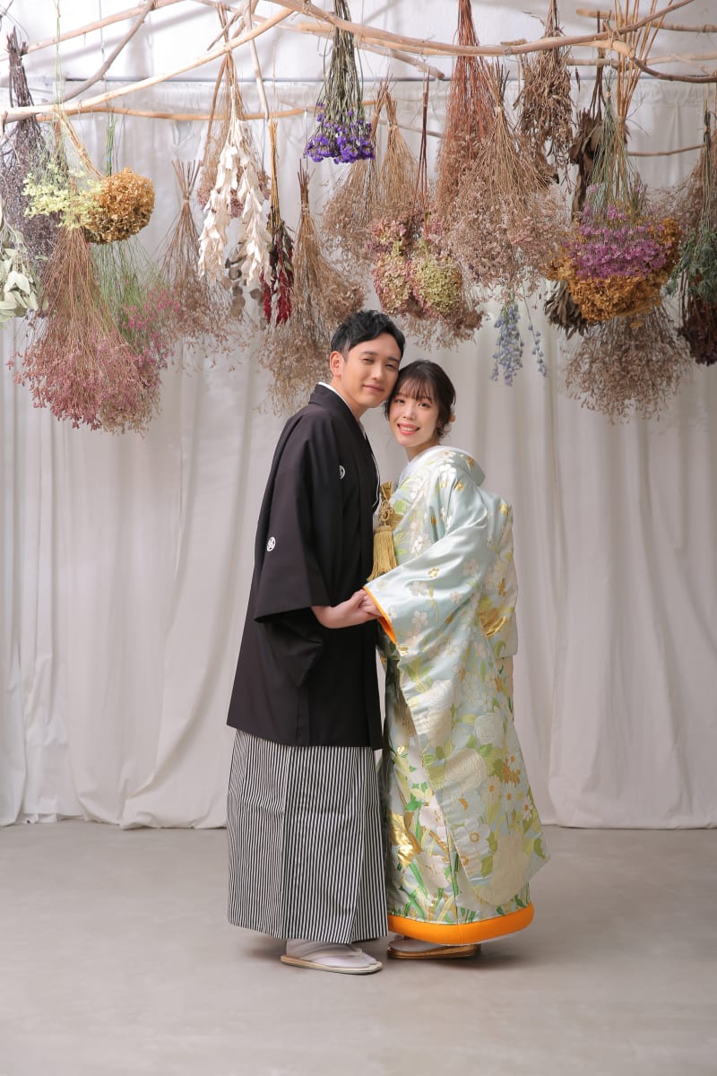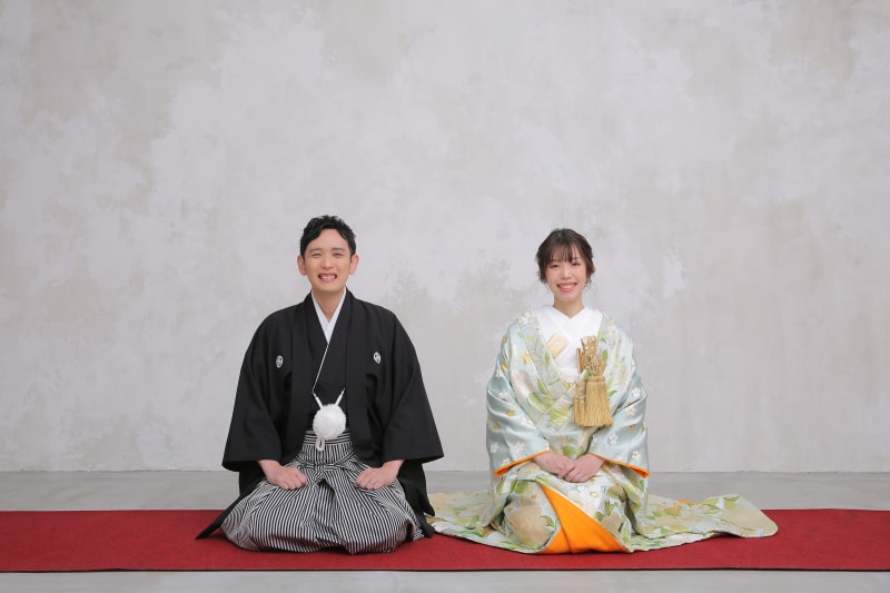 本格的な茶室スタジオで撮影する、和装の結婚写真