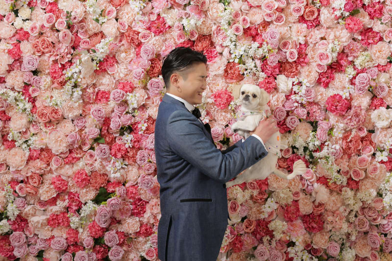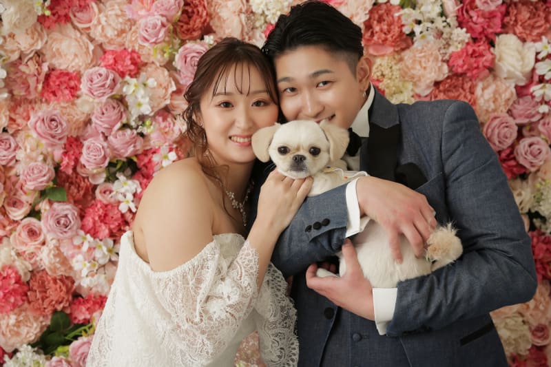 この背景も、新郎さんソロではなかなか選ばれない背景ですが、ワンちゃんと一緒なら可愛さ増し増しです!