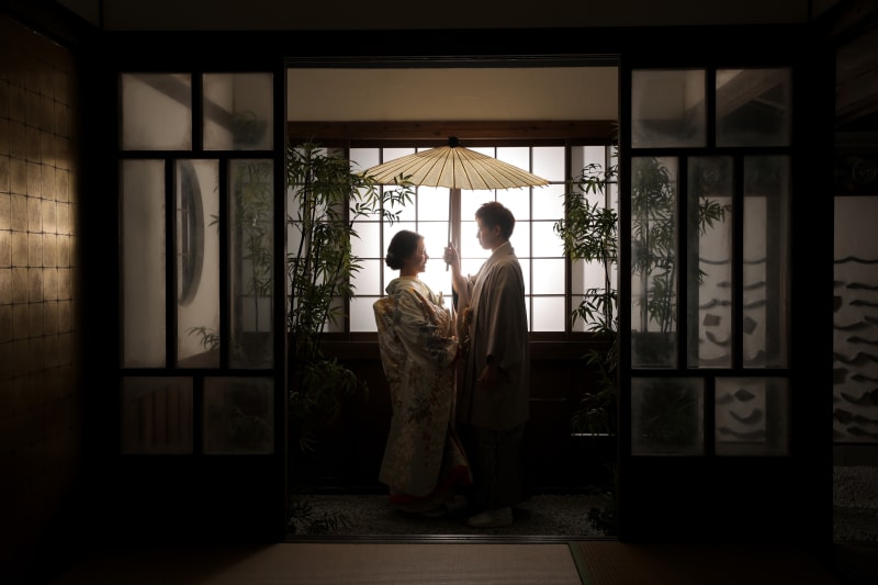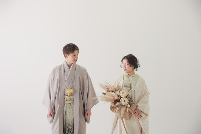 先日和庭園で撮影されたお客様のお二人のコーディネイトが