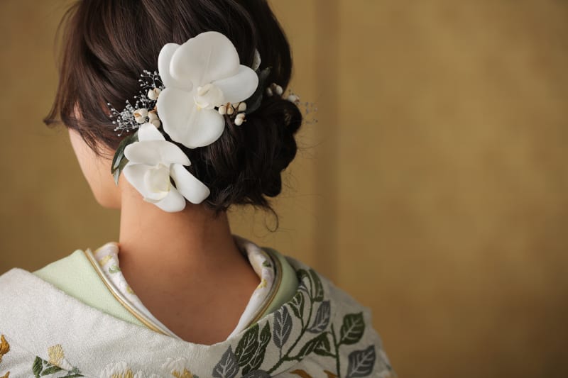 ヘッドもあまり色味を使いすぎず、お着物と色味を合わせて・・