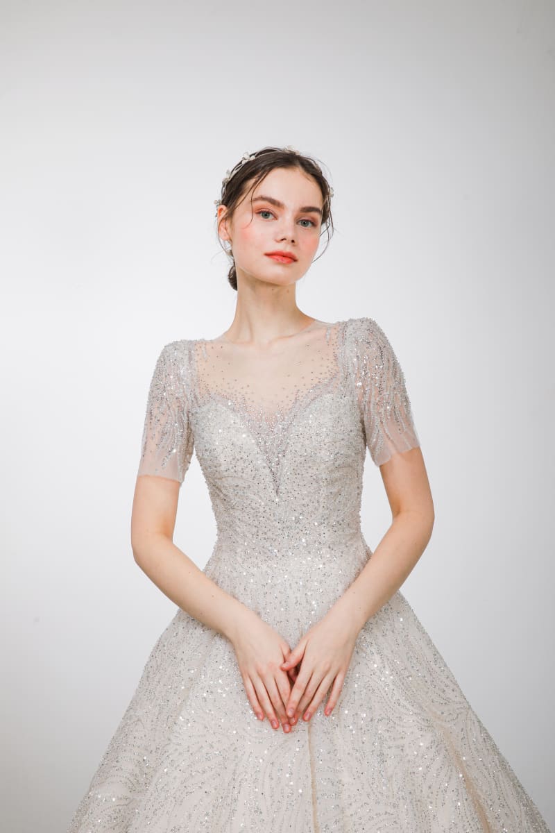 どの衣装も、繊細なビーディングとラメチュールのスカートが動くたびに優しい輝きを放ちます✨