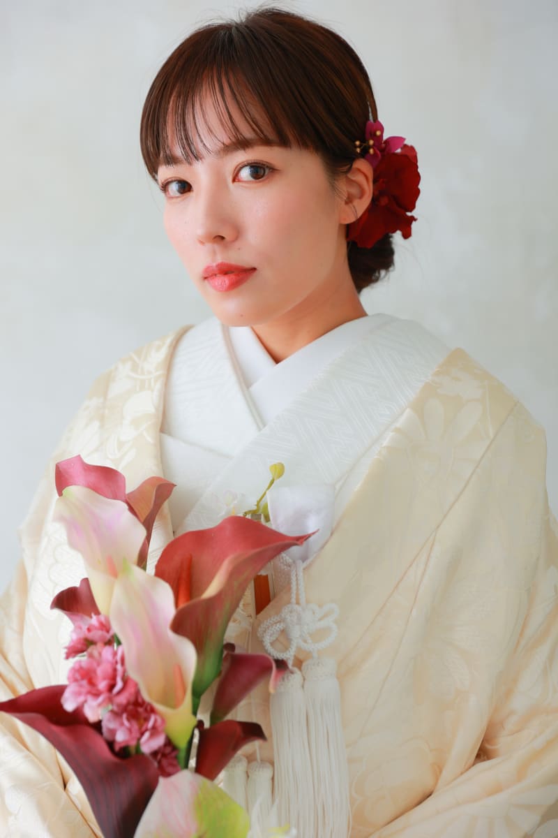 正座は結婚報告や年賀状、ムービーの素材などいろいろと使いやすいのでおすすめのポーズです