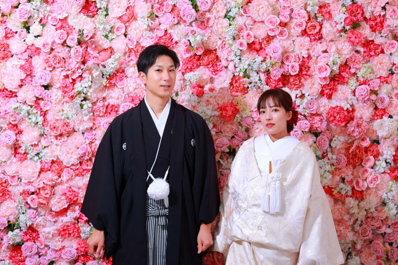 お客様はフラワーウォールをとても気に入ってくださっていて