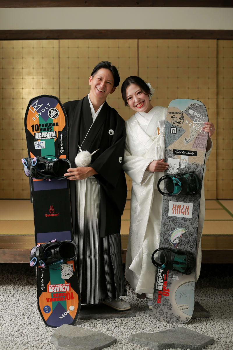 お二人の趣味はスノーボードということで、撮影にご持参いただきアイテムとして!!