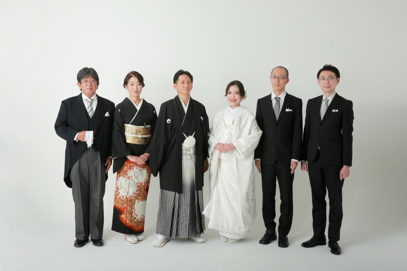 最近ではお父様のモーニングやお母様の留袖をお召しになって、ご家族様も一緒に撮影する