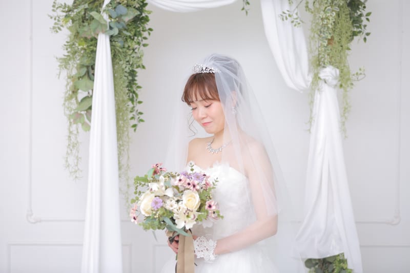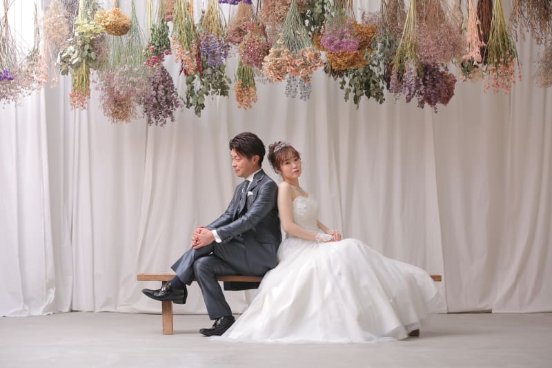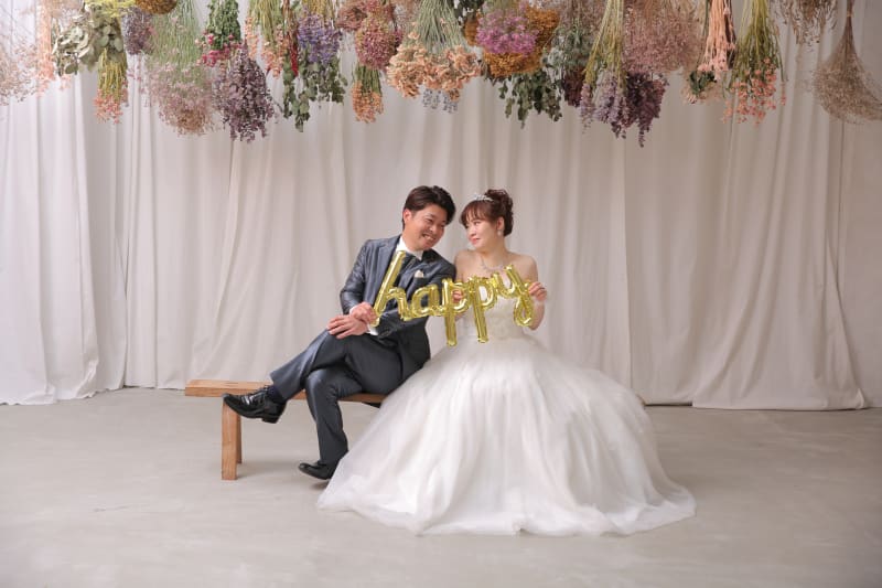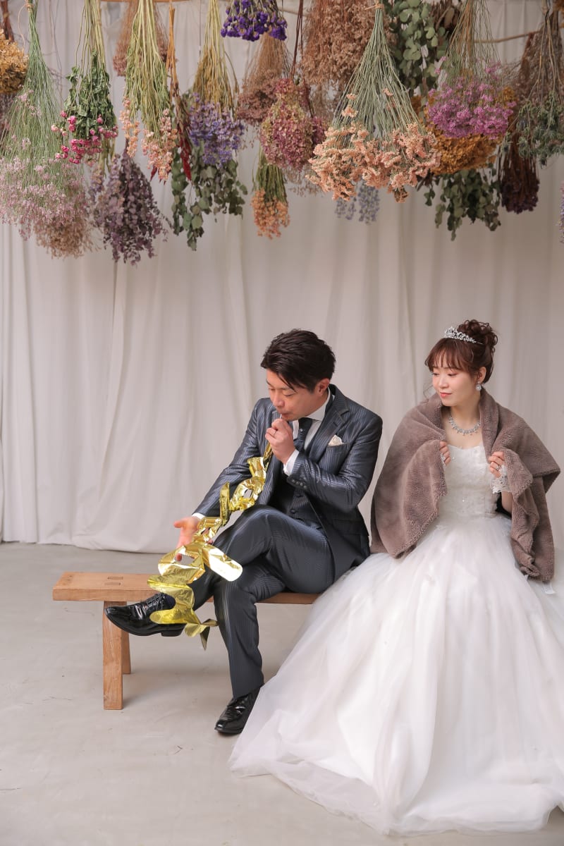 ウェディングドレスからカラードレスにチェンジして色々可愛いポーズ撮影して
