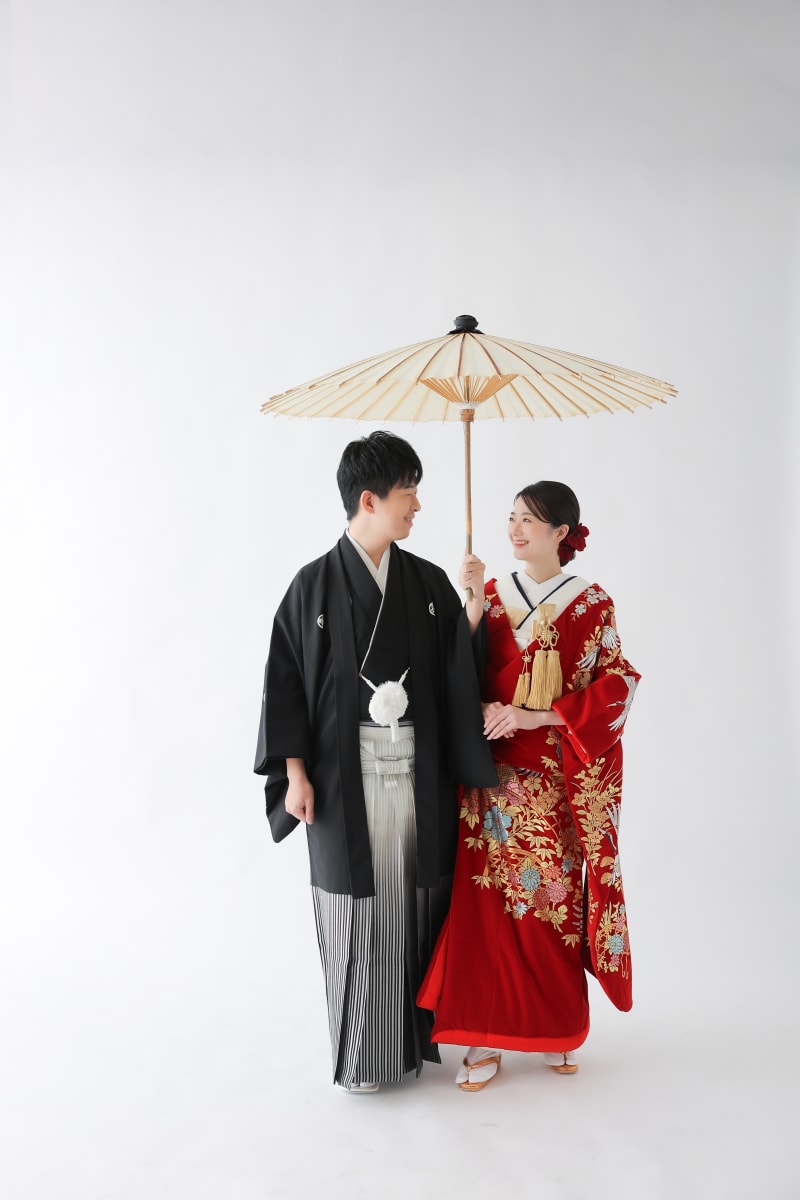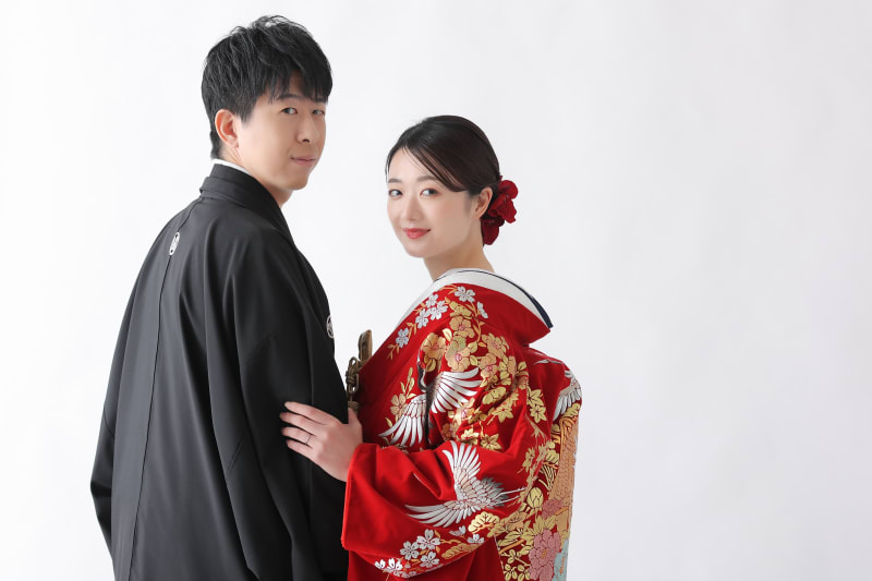 本格的な茶室スタジオで撮影する、和装の結婚写真