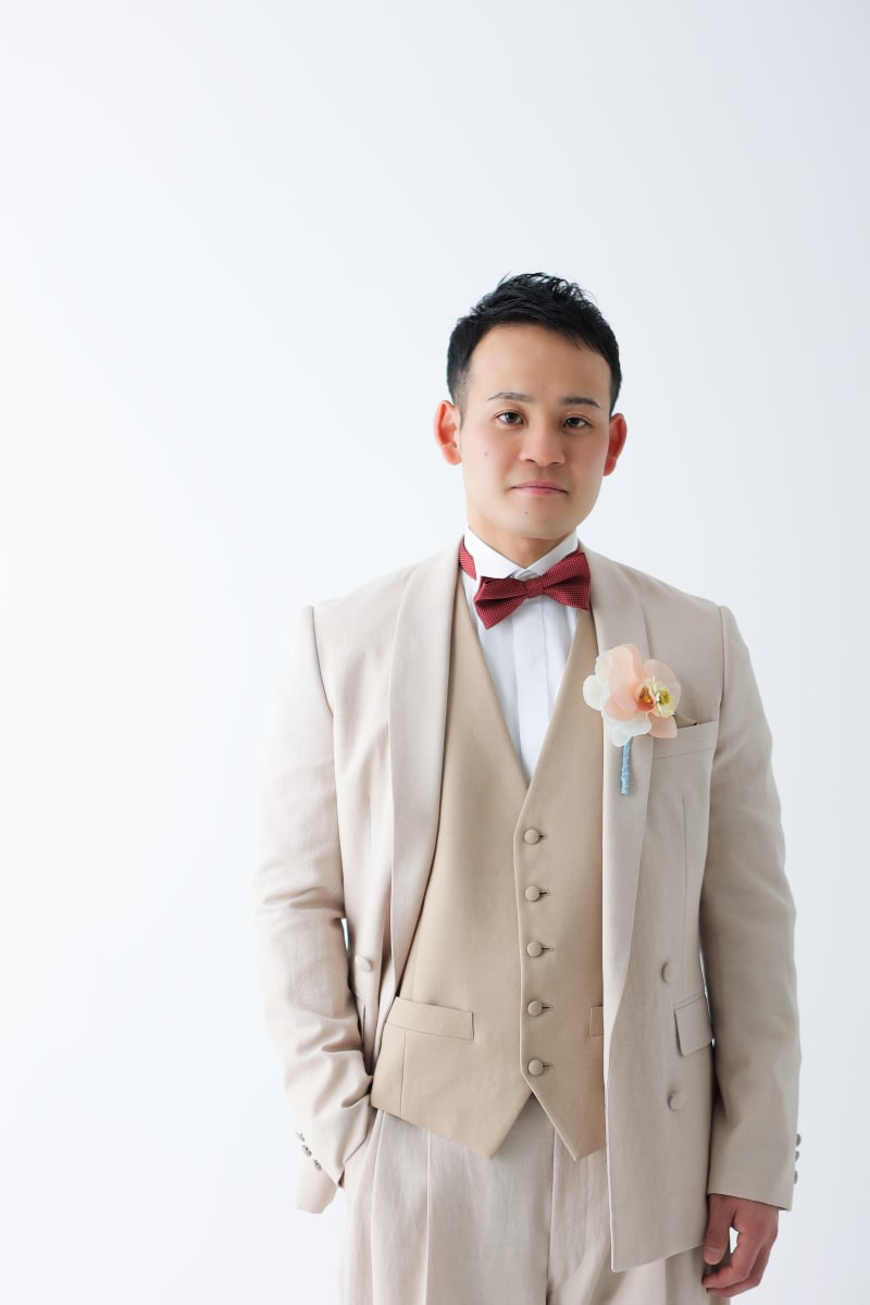 新郎様もベージュのタキシードがとってもお似合いでした!!