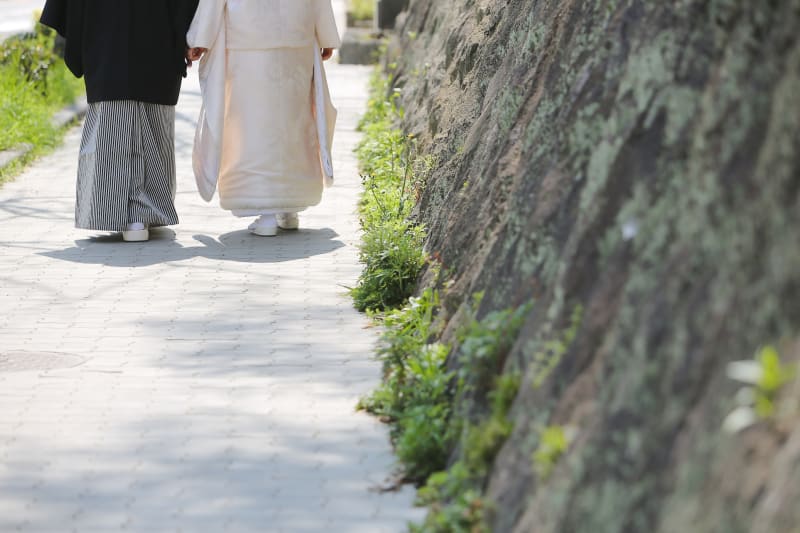 通りすがりのたくさんの方からお祝いの言葉をかけていただきながらの撮影になることが多いので