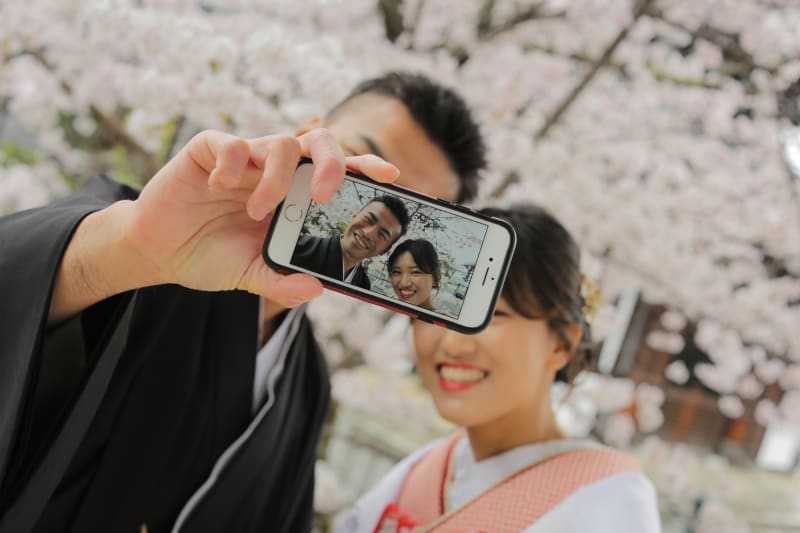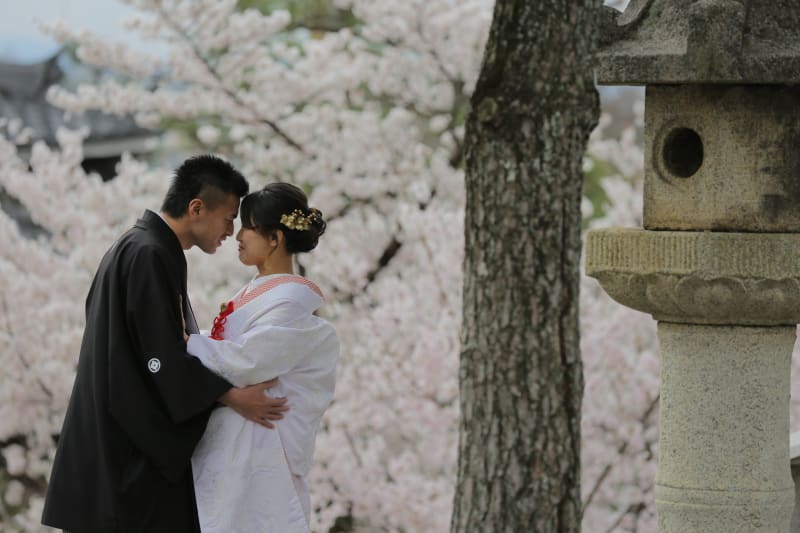 本格的な茶室スタジオで撮影する、和装の結婚写真