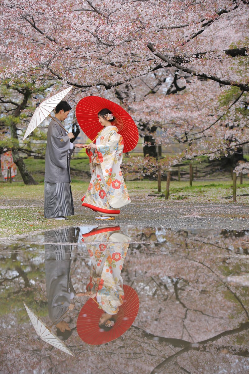 桜の時期後期には八重桜も咲くので4月に入っての撮影も心配ありません