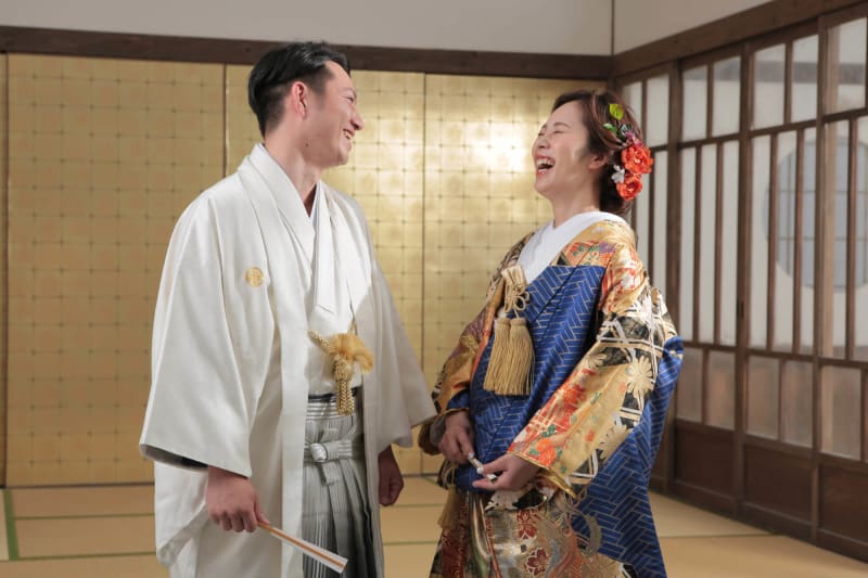 色打掛は青の和柄の打掛で