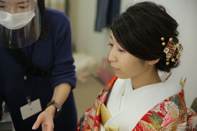 (現在コロナウイルスの感染拡大予防の為、お支度中にも都度マスクの着用をご協力お願いしております)