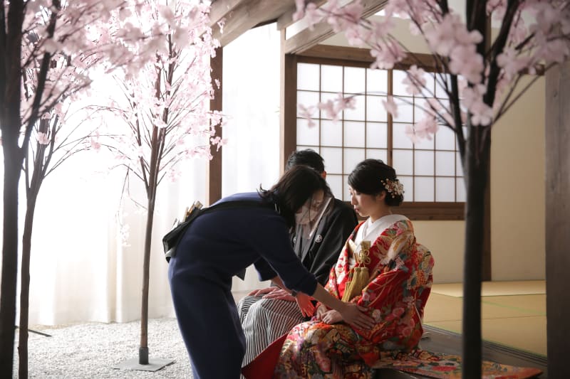 当店では桜と一緒に撮影したい方は室内かロケーションをご準備しております!