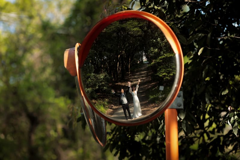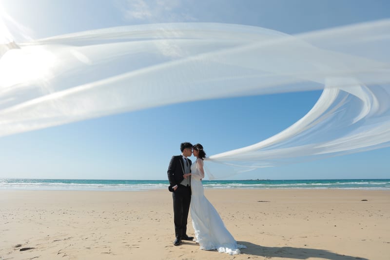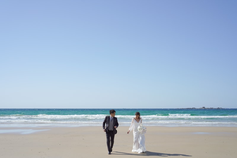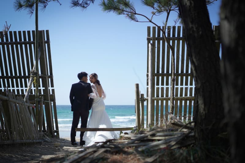 チラッと見える海と、チラッと振り向く新婦様♡ かわいいです^^