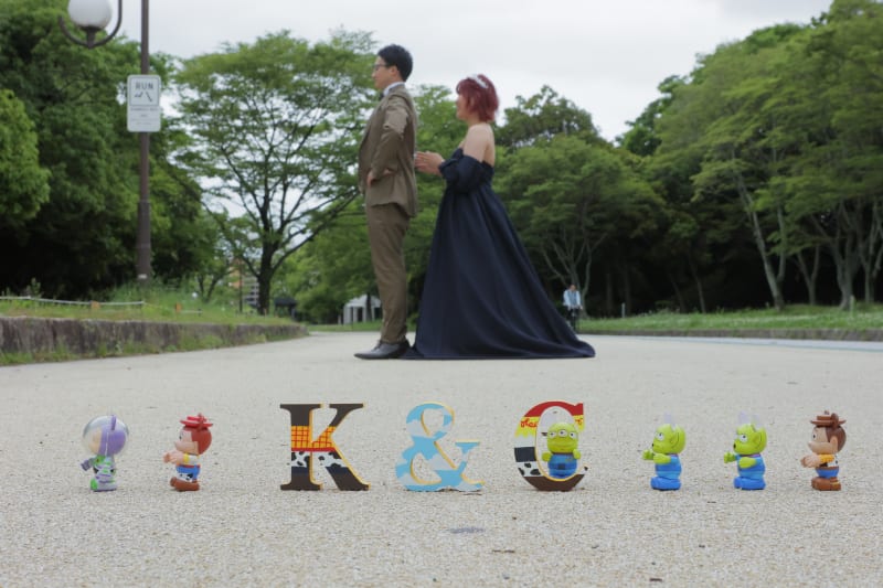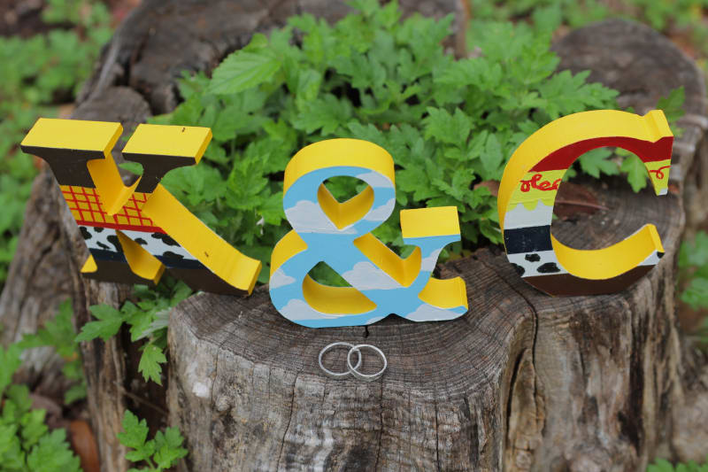 お嫁さまとっても手先が器用でヘッドドレスからイニシャルオブジェもトイ・ストーリーカラーに塗ってきてくださいました👏👏👏凄すぎる!!!!