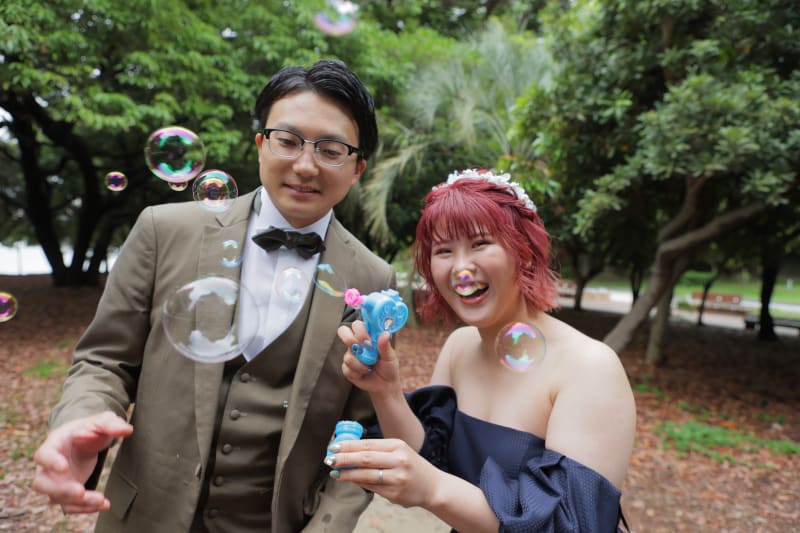 ご新婦様がたくさんシャボン玉を作成してる横で