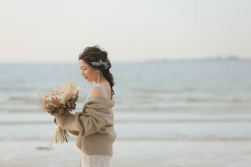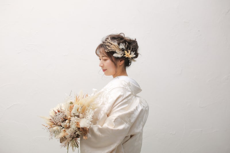 お持込みのドライフラワーのブーケに合わせてヘアはこちらでご準備しているドライフラワーを。