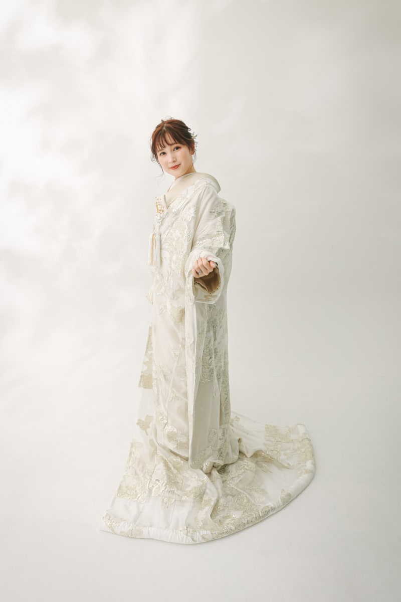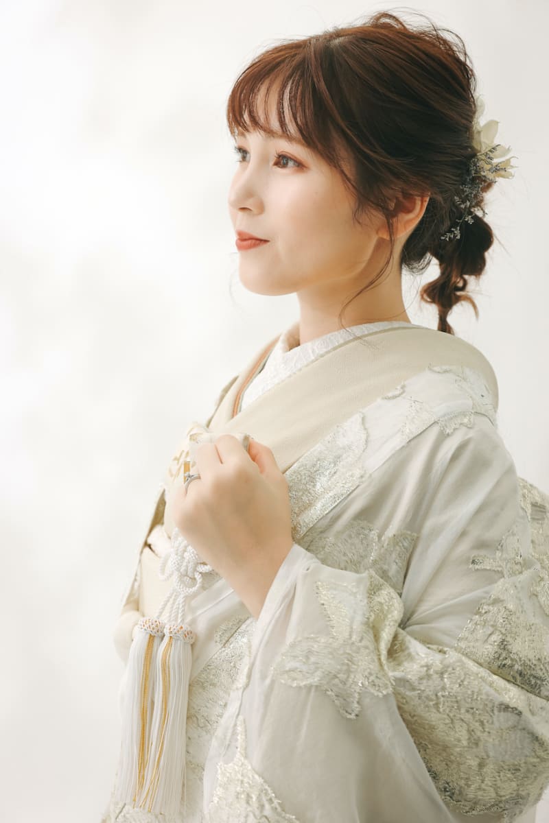 打ち掛けの下に着用する掛下や、胸元の小物もコーディネートをしてオリジナルで着たいただくのがお勧めです!!