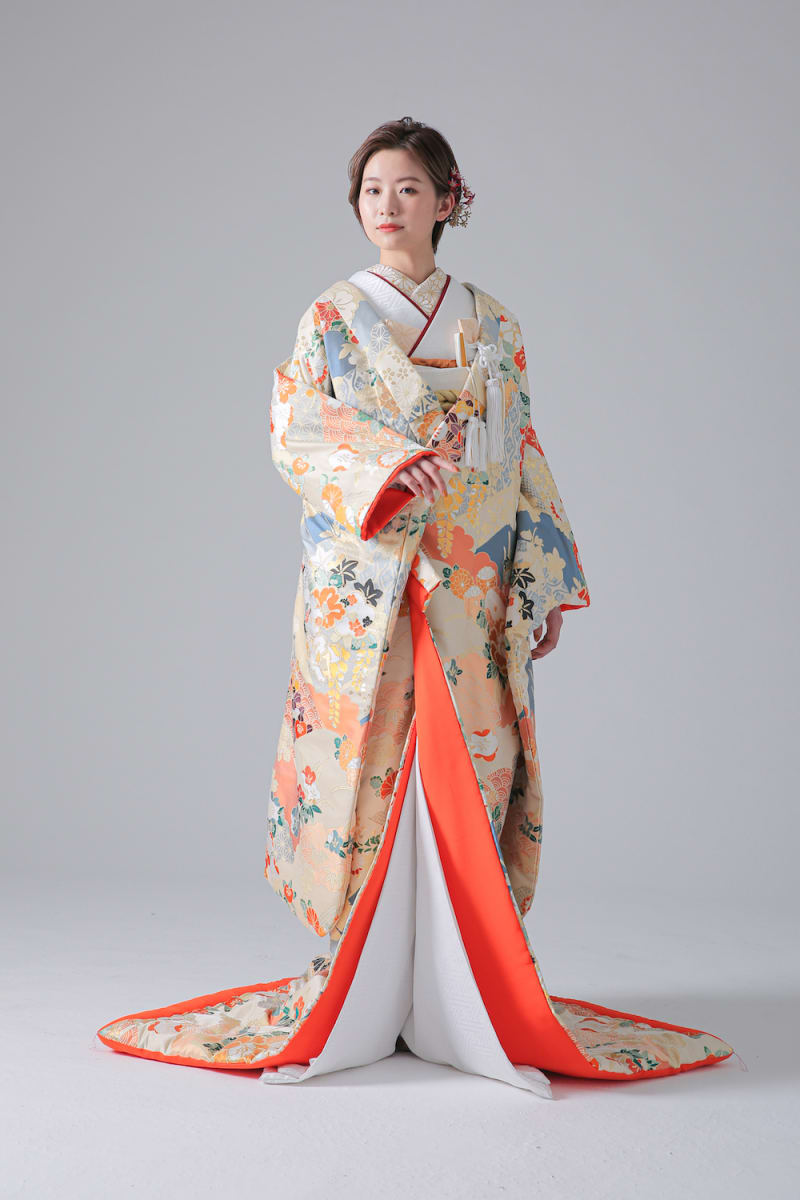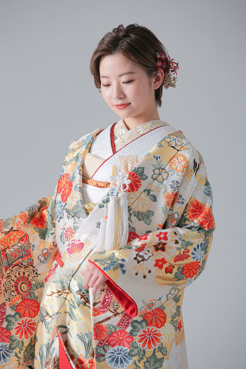 古典柄の打ち掛けには欠かせない御所車は、魅力あるモチーフとして登場する吉祥文様の一つです。