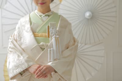 白無垢では、中に着る掛下や襟や小物などを自分好みに