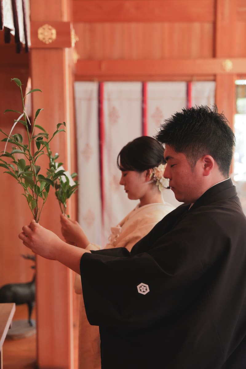 ご家族・ご友人様に見守られながら、神様に玉串を捧げました。