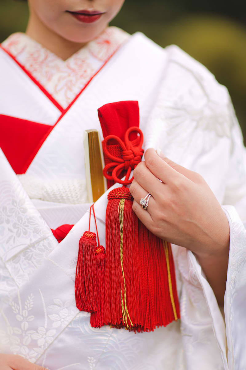 魔除けの意味がある赤は、白無垢に映えてとっても素敵!