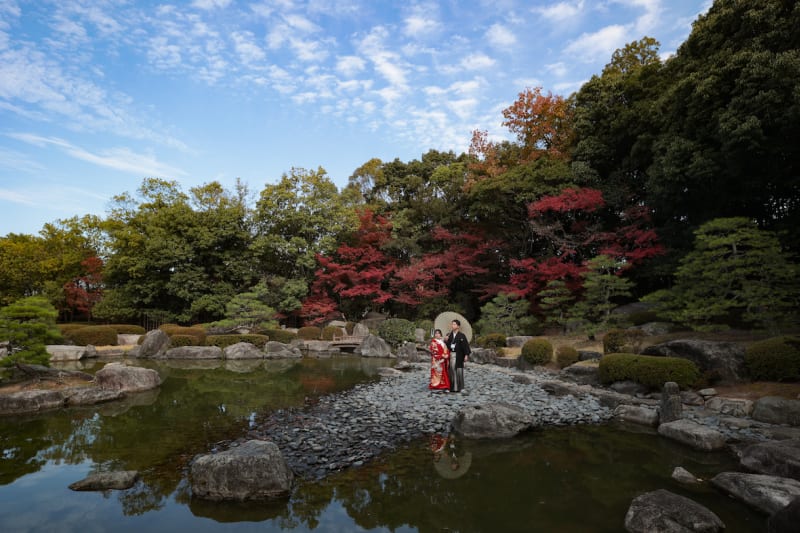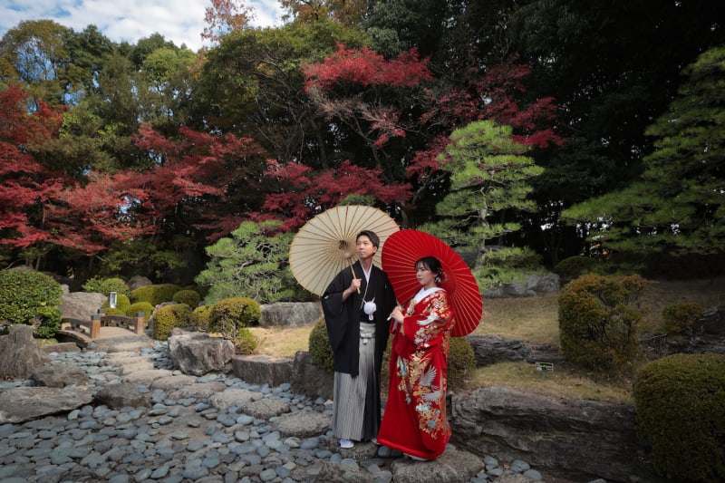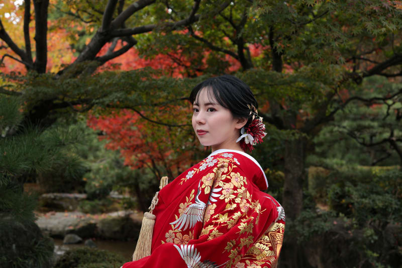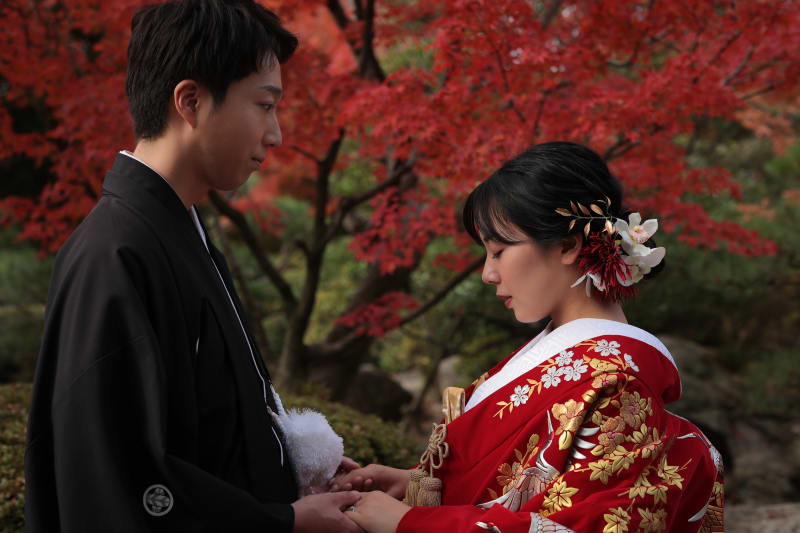 本格的な茶室スタジオで撮影する、和装の結婚写真