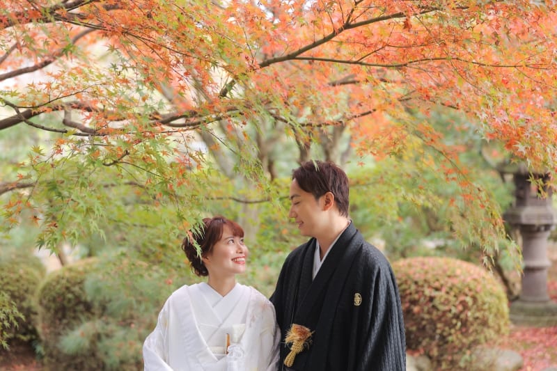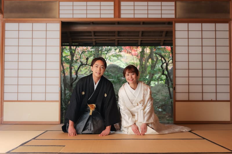 本格的な茶室スタジオで撮影する、和装の結婚写真