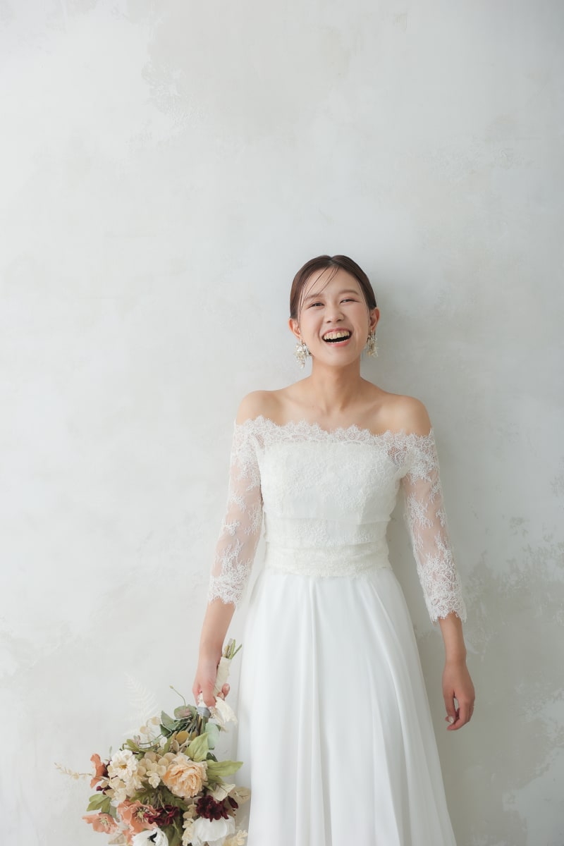 白はレフ板効果もあるので顔周りを明るく、肌を綺麗に見せ、清楚な花嫁という印象を与えてくれます。