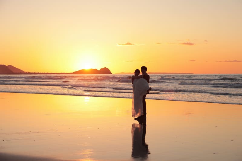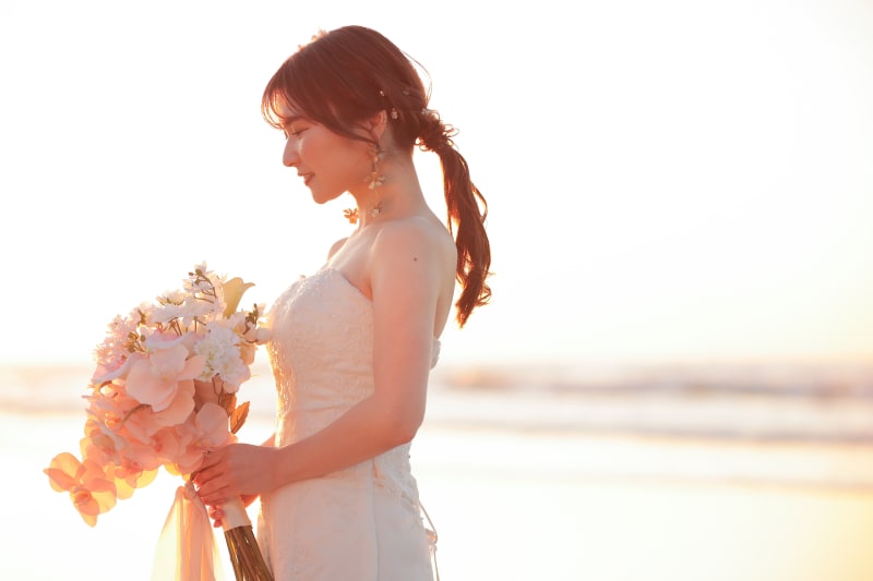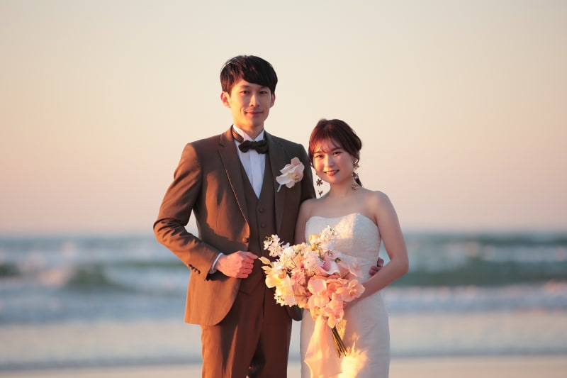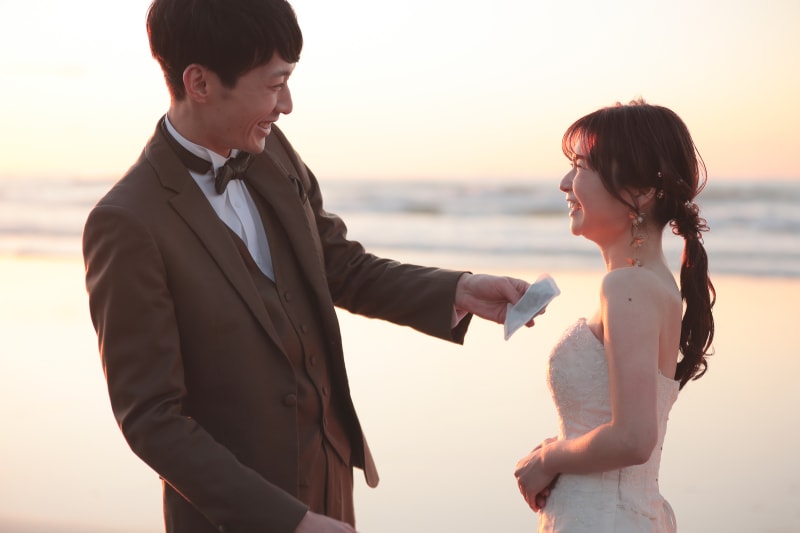 和装での撮影も終えて、ドレスに着替えて糸島に行く頃には少しずつ日差しも柔らかくなり