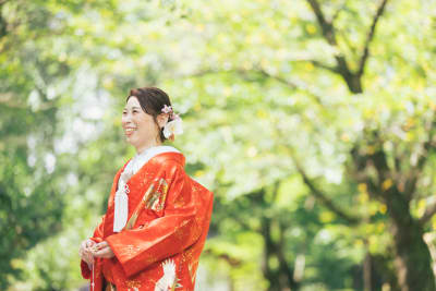 初夏のみずみずしい緑色の木々だちと和装で撮影をしてみませんか?