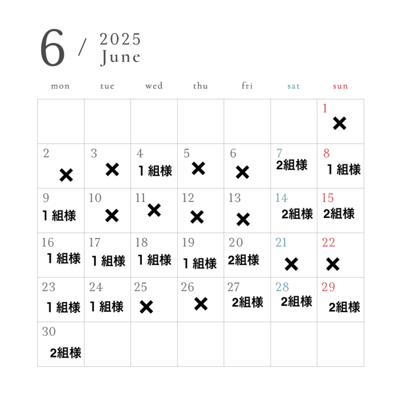 6月の撮影空き状況〜↓(5/17朝時点です)
