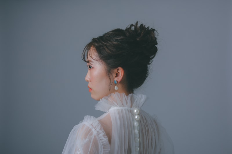 ヘアスタイルは首が詰まっているデザインだった為、高めのアップスタイルで仕上げました◎