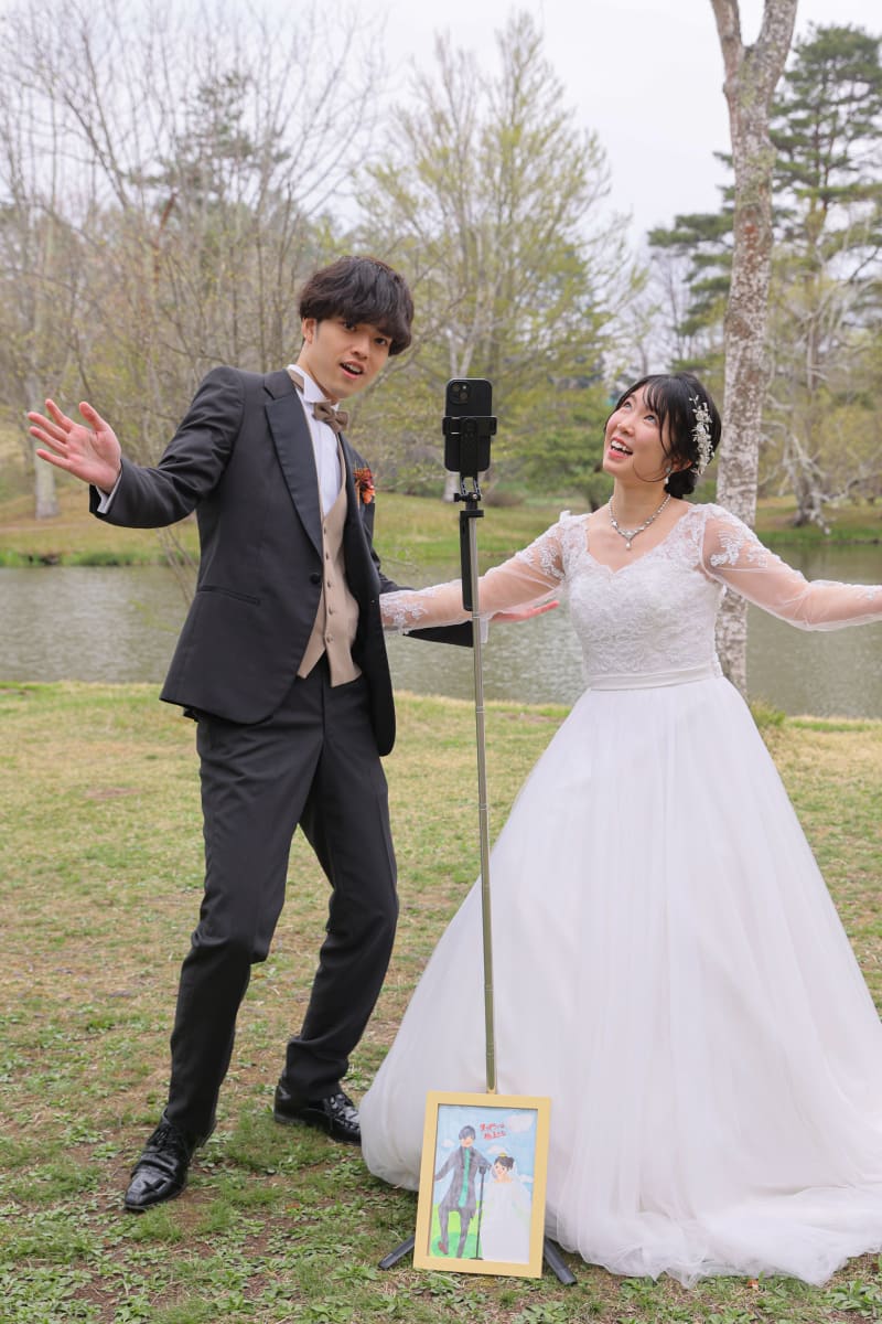 ・ご新婦様が描いた絵を再現!マイクが無かったのでお父様のスマホスタンドを借りてマイク風にしました笑