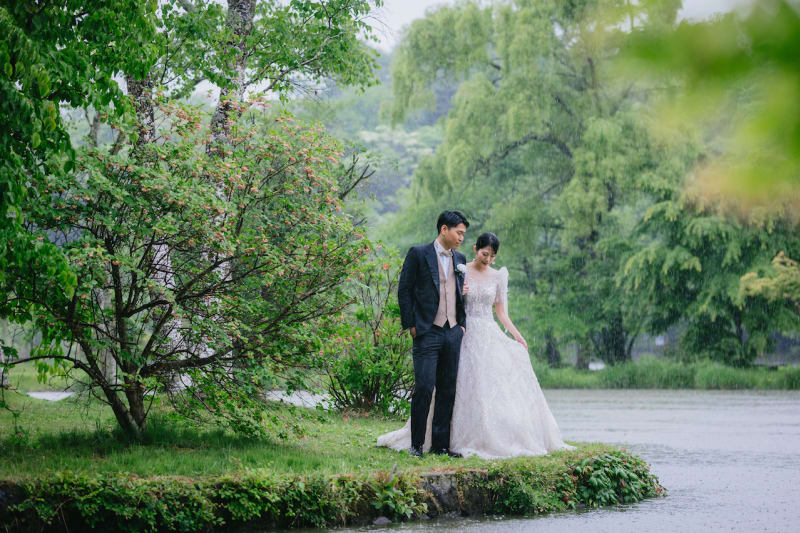 お二人もスタッフも雨に濡れながらもとっても楽しく撮影が行われました。